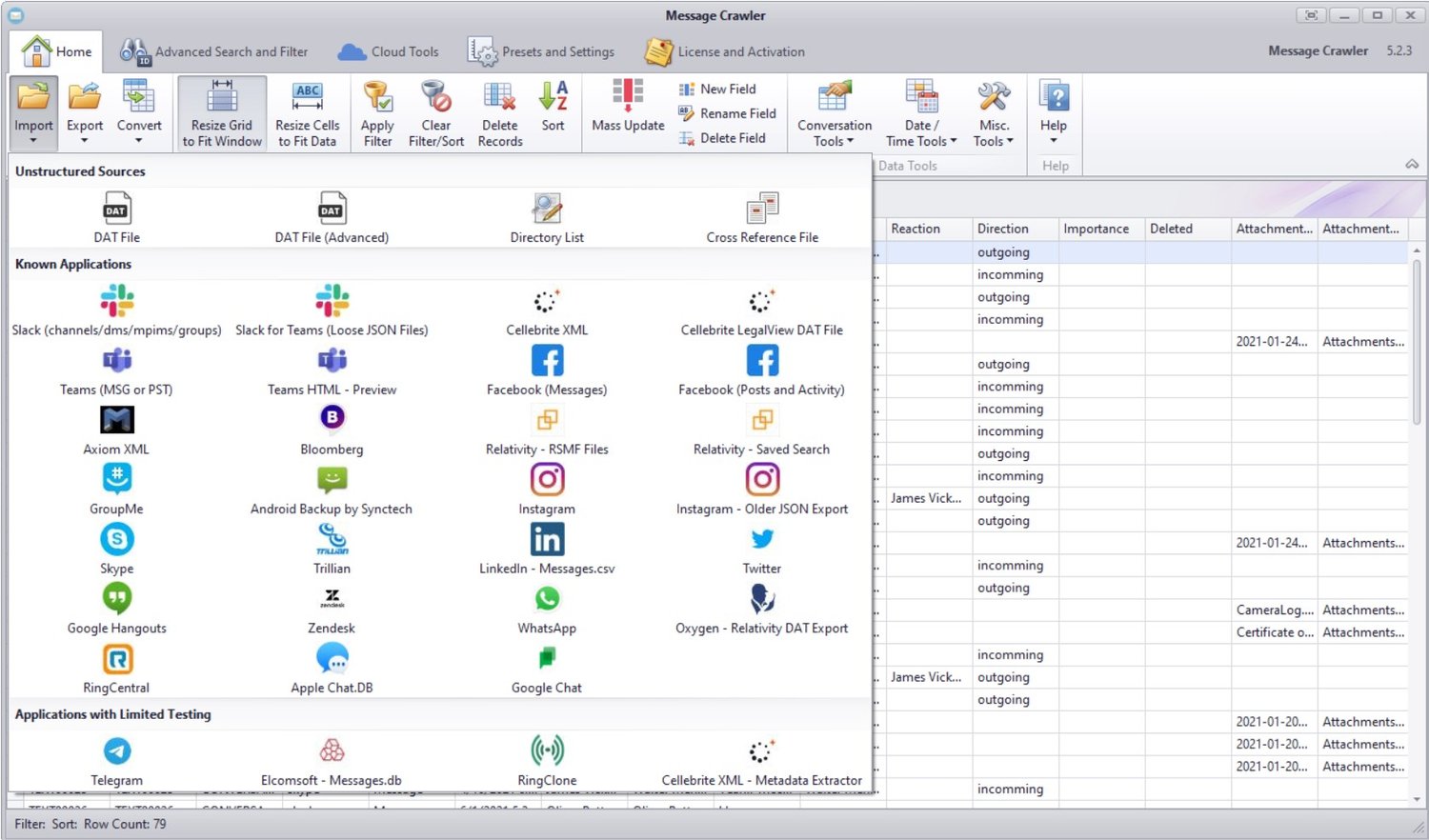 Message Crawler is a short message conversion and analysis application that supports export to RSMF file format for Relativity.