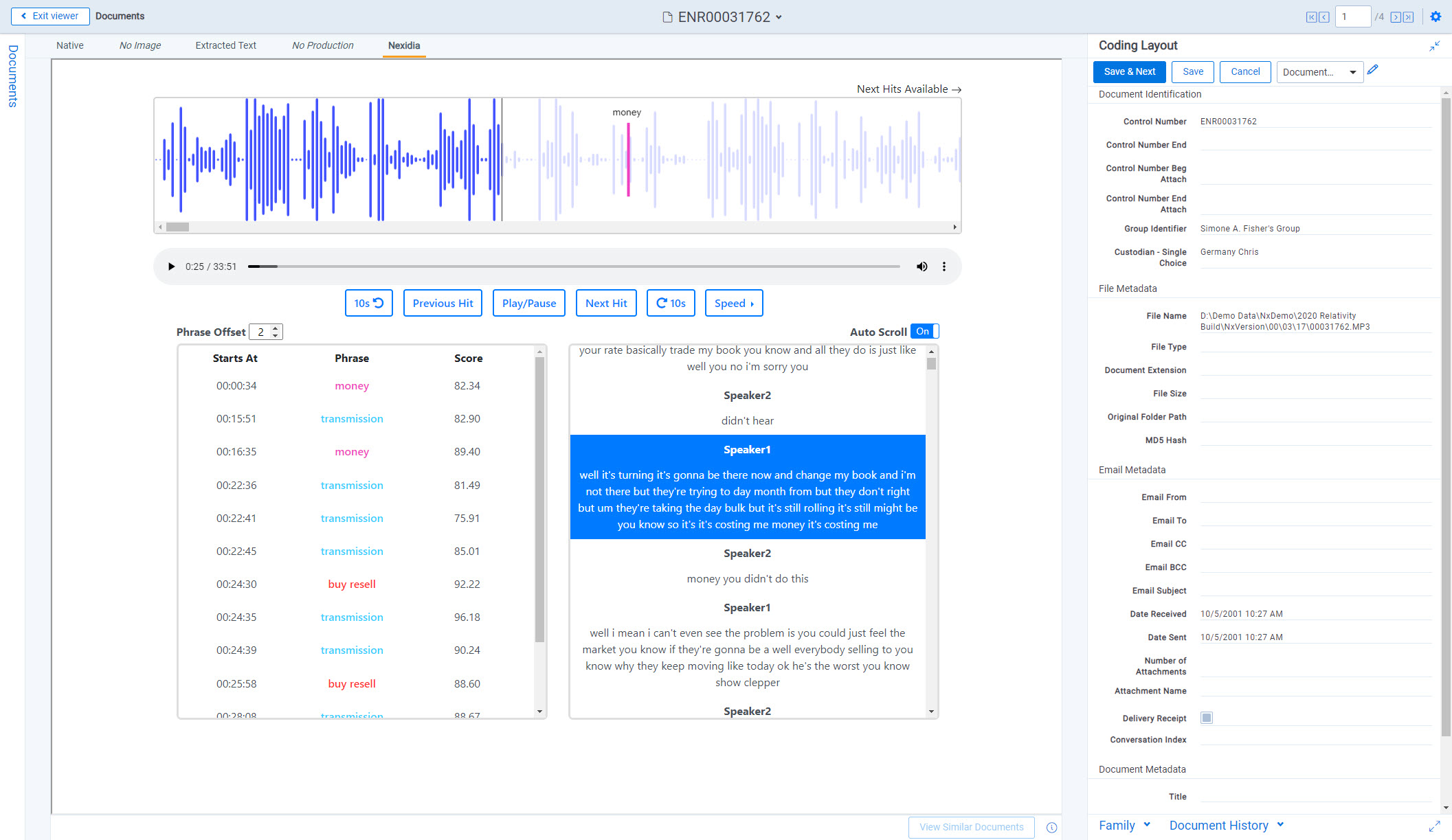 Nexidia helps legal professionals quickly and accurately search, review, and categorize large volumes of audio and video in response to discovery, regulatory, and compliance investigations. Nexidia’s patented phonetic process is the only technology that allows users to quickly search proper names, places, industry terms, and jargon without extensive training or cumbersome dictionaries. Reducing costs by as much as 50-80% over traditional human listening or transcription methods, Nexidia’s Audio Discovery is the best option for review and analysis of audio and video evidence.
