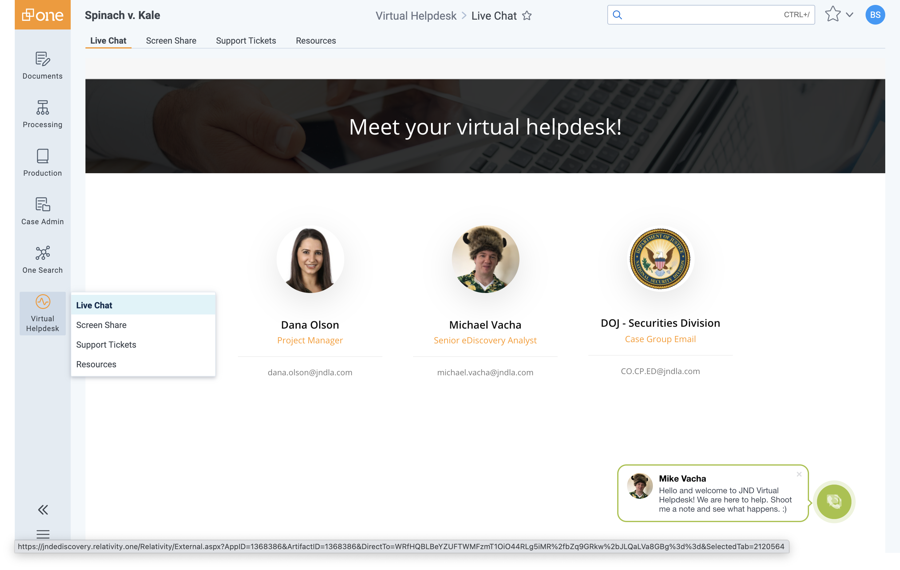 - Live chat and video/screen share with JND’s Relativity-certified teach team